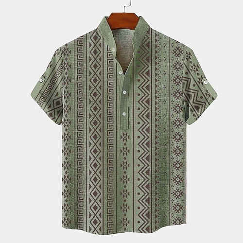 Per uomo Geometrico Chiave greca Meandro Camicia Camicia button-down Manica Corta Vintage Retrò Ferie Casual Quotidiano Estate Primavera Colletto Mao Colletto Henley Stampa 3D Camicia tipo lino Cáqui