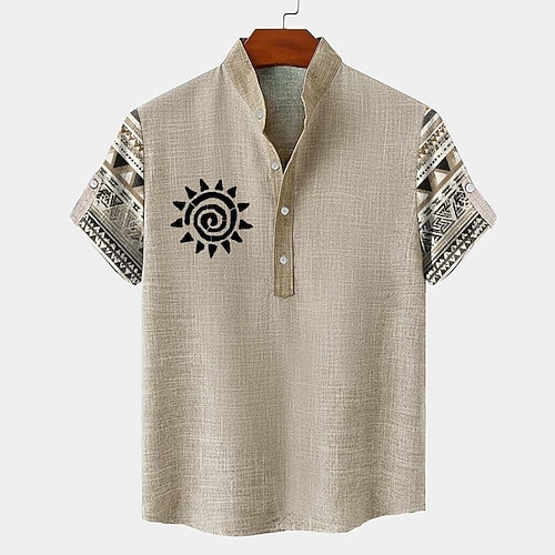 Per uomo Tribale Etnico Totem del sole Camicia Camicia button-down Manica Corta Vintage Retrò Ferie Casual Quotidiano Estate Primavera Colletto Mao Colletto Henley Stampa 3D Camicia tipo lino Cáqui