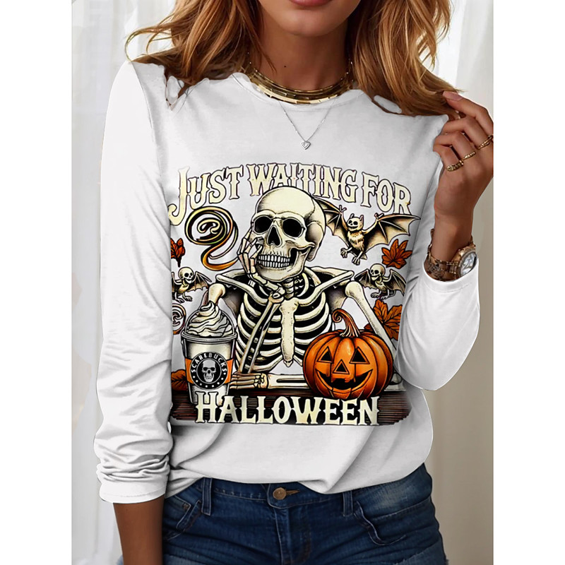 Women's T shirt Pumpkin Graphic Skull Vintage Fashion Stylish Long Sleeve Crew Neck Round Neck Regular Tops Daily Weekend Print Black White Pink Blue Purple Spring Fall Winter