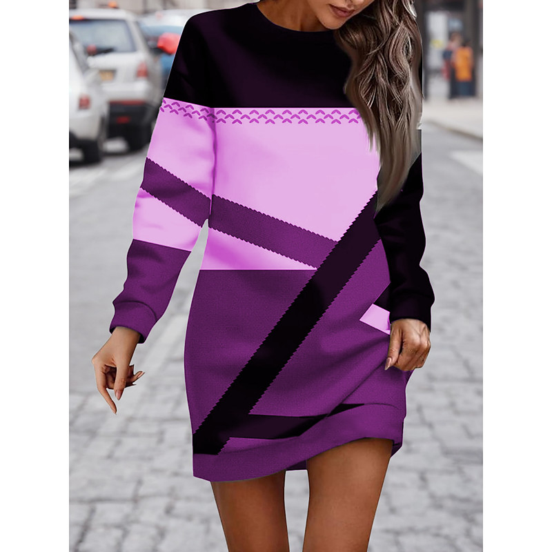 Women's Mini Dress Sweater Dress Shift Dress Casual Boho School Outdoor Home Regular Fit Graphic Geometric Long Sleeve Crew Neck White Blue Purple Green Spring Fall Winter