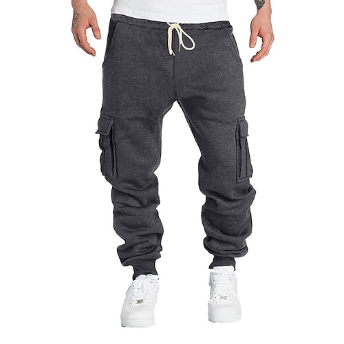 Herren Cargo-Jogginghose Jogginghose Fleecehose Hose Winterhose Kordelzug Tasche Elastischer Bund Einfach Komfort Warm Täglich Ferien Campen und Wandern Mode Klassicher Stil Schwarz Weiß