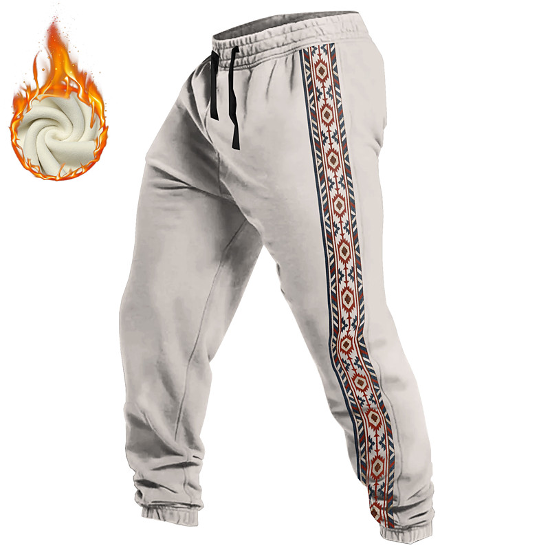 Men's Aztec Ethnic Sweatpants Trousers Fleece Sweatpants Drawstring Elastic Waist Vintage Casual Outdoor Holiday Streetwear Warm Fleece Lined Thermal Winter 3D Print Light Gray Black Wine