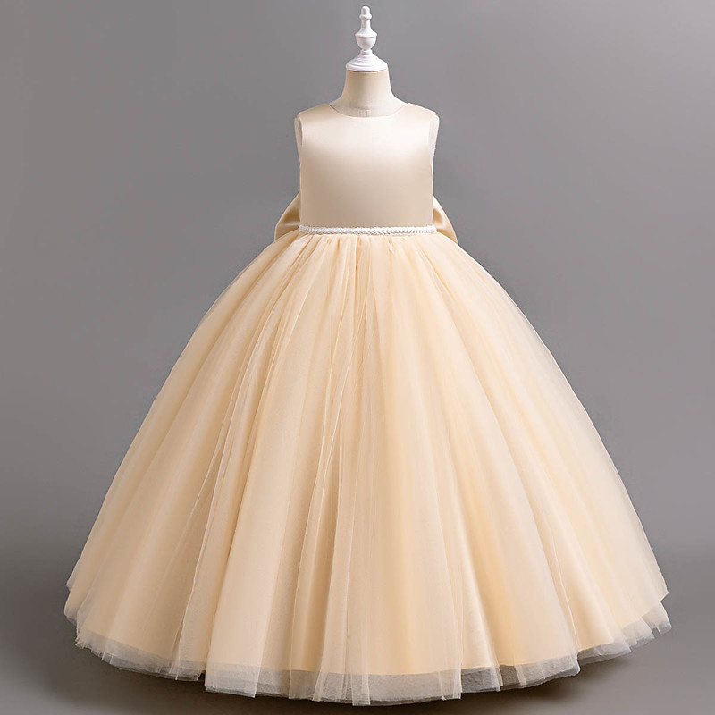 Flower Girl Dress Girls' First Communion Dress Party Dress Performance Wedding Party Princess Sweet Mesh Solid Color Sleeveless Crew Neck White Champagne 2-12 Years