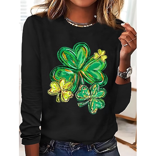 T-shirt donna di San Patrizio shamrock piante casual maniche lunghe girocollo top normali stampa quotidiana nera bianca rosa blu khaki estate primavera