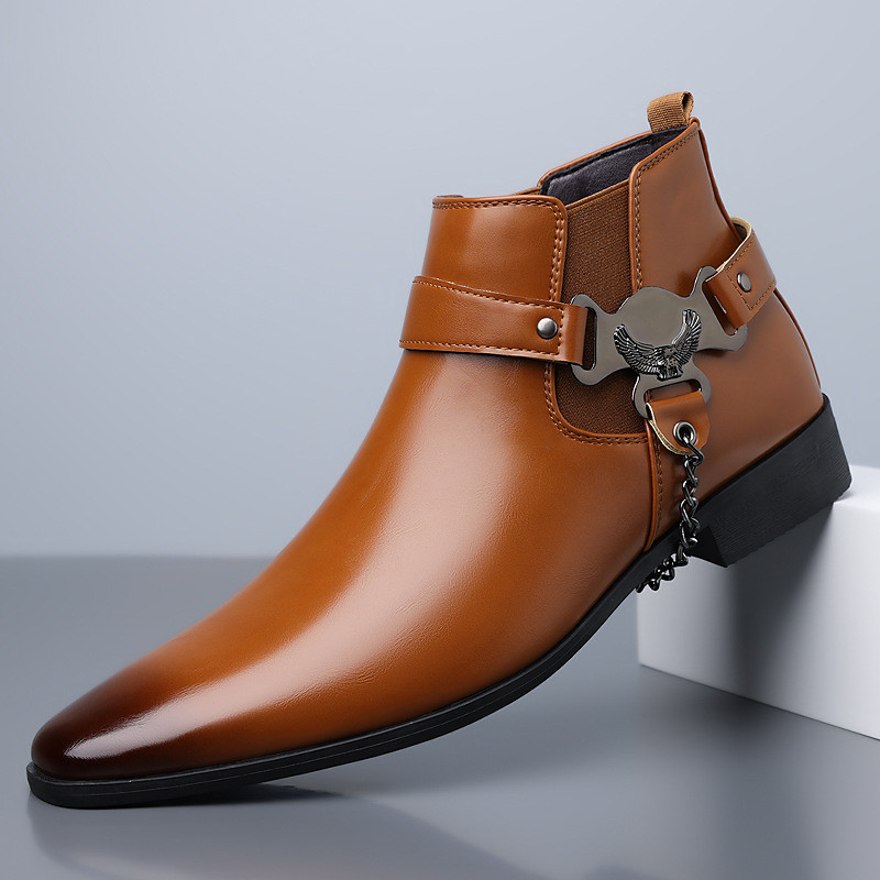 Tan Faux Leather Men's Ankle Boots with Buckle Detail – Stylish and Durable Footwear for Casual and Semi-Formal Events