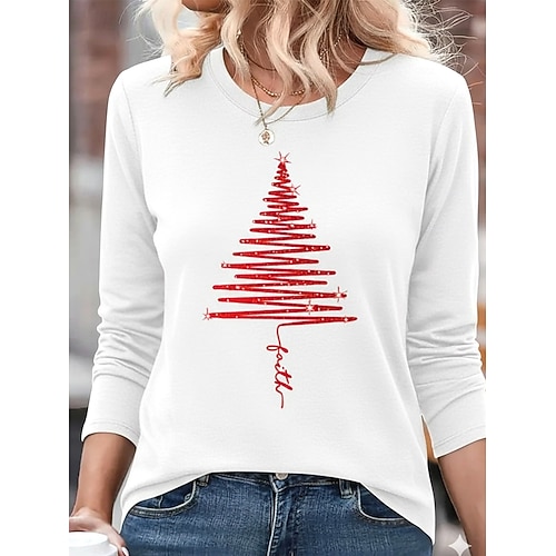 T Shirt donna di Natale Graphic Claus Moda Vintage Elegante Classico Maniche Lunghe Collo a Giro Collo a V Regolari Top Daily Stampa Bottoni Asimmetrica Nero Rosso Blu Verde Primavera Autunno Inverno