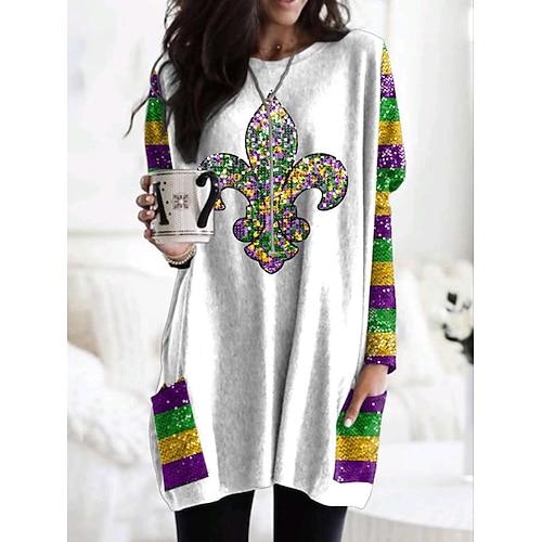 T-shirt da Donna Carnival Ombre Cuore Grafica Moda Elegante Classica Maniche Lunghe Collo Giro Regular Tops Moda Quotidiana Uscita Weekend Stampa Tasche Bianca Gialla Viola Primavera Autunno