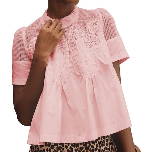 Per donna Camicia Blusa Semplice Elegante Moderno Casual Manica Corta Colletto a Camicia Top Regolari Quotidiano Ferie Uscire Pizzo Nero Bianco Rosa Rosso Azzurro cielo Estate Primavera