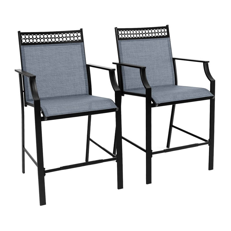 COSTWAY Set mit 2 Gartenstühlen, hohen Terrassenstühlen, Balkonstühlen mit schnell trocknendem Stoff, 66 x 62 x 114 cm (blau)