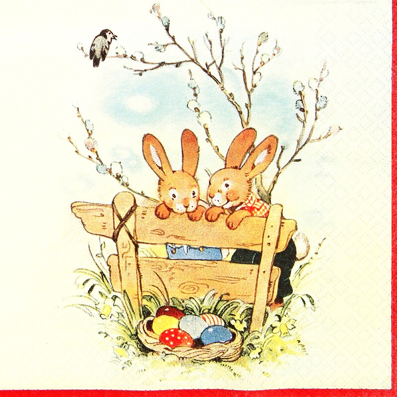 Home Fashion, Bunny Friends, Lunch-Servietten aufgefaltetes Maß 33 cm x 33 cm, im Viertelfalz, 20 Stück pro Pack
