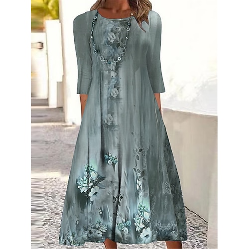 Per donna Abito Midi Vestito Casual Abito skater Abito Estivo Moda Moderno Quotidiano Weekend Abito Autunnale Vestibilità regolare Floreale Mezza Manica Scollo a V Blu marino Marrone Verde Autunno