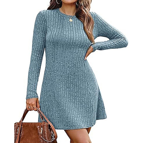 Per donna Mini Abito Abito in maglia Moda Moderno Quotidiano Vacanza Uscire Vestibilità regolare A righe Manica Lunga Girocollo Blu Nero Vino Verde Primavera Autunno