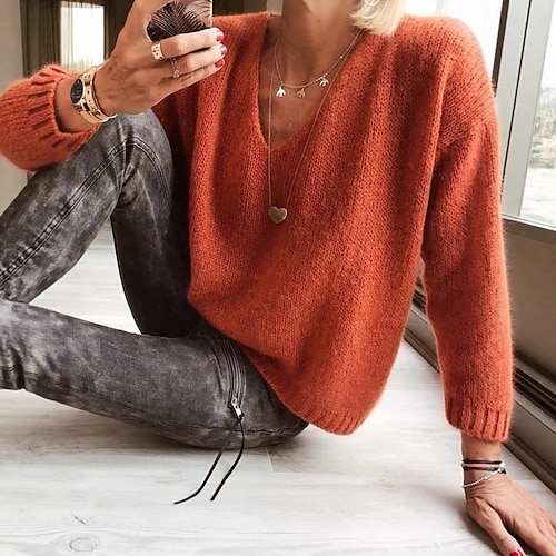 Per donna Felpa Casual Morbido Colore Puro A Coste Scollo a V Lavorato a maglia Manica Lunga Top Regolari Maglia All'aperto Quotidiano Weekend Nero Rosa Autunno Inverno