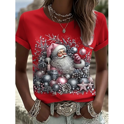 Natale Per donna Maglietta Grafico Natale Vintage Elegante Classico Manica Corta Girocollo Top Regolari Quotidiano Stampato Blu Nero Bianco Rosa Rosso Estate Primavera Autunno Inverno