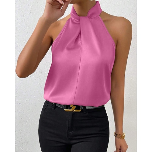 Per donna Camicia Elegant Raso/Satin Maglia di seta Semplice Elegante Senza Maniche All'americana Top Regolari Ferie Uscire Senza schiena Nero Bianco Cammello Viola Marrone Estate Primavera