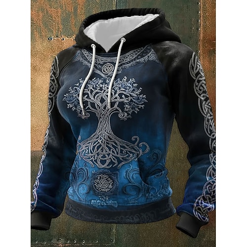 Per donna Felpa con cappuccio Grafico Geometrico Casual Manica Lunga Con Cappuccio Top Regolari Casuale Abbigliamento Quotidiano Sportivo Blu Nero Verde Primavera Autunno