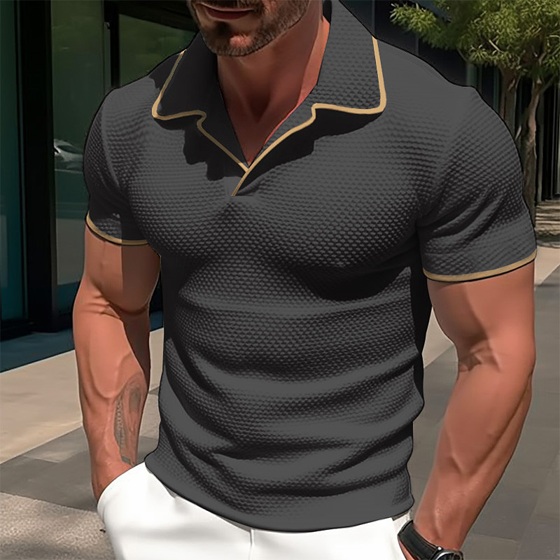 Men's Waffle Polo Shirts Textured Casual Sports Lapel Short Sleeve Muscle Old Money Style Plain Patchwork Summer Regular Fit Black White Navy Blue Grey Waffle Polo Shirts