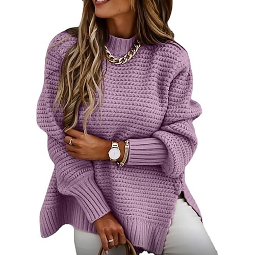 Per donna Felpa Maglione Streetwear Casual Tinta unica Collo alla coreana Lavorato a maglia Manica Lunga Top Regolari Maglia Quotidiano Ferie Uscire Nero Rosa Autunno Inverno