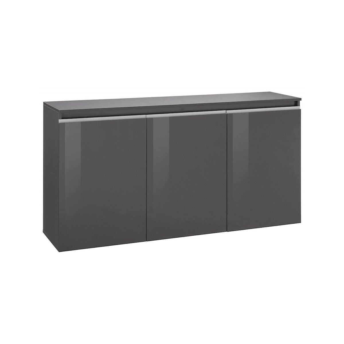 Dmora Kommode Pino, Küchen-Sideboard mit 3 Türen, Wohnzimmer-Buffet, 100% Made in Italy, cm 150x40h81, Anthrazit glänzend