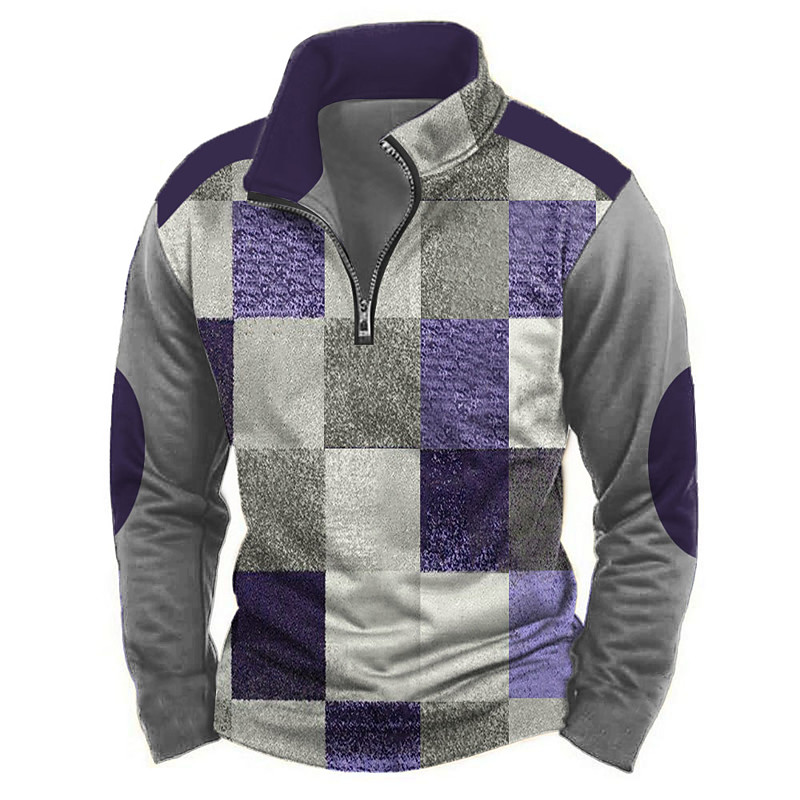Men's Geometric Plaid Sweatshirt Casual Vintage Retro Long Sleeve High Neck Outdoor Streetwear Red Blue Purple Green Zipper Quarter Zip Fall Winter Designer S M L XL XXL 3XL