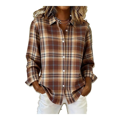 Per donna Camicia Plaid Quotidiano Elegante Essenziale Manica Lunga Colletto a Camicia Top Regolari Lavoro Quotidiano Ferie Bottoni Nero Primavera Autunno