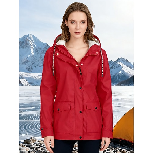 giacca antipioggia da donna impermeabile giacca da trekking in pile invernale all'aperto caldo impermeabile pile antivento parka con cappuccio tuta sportiva giacca a vento trench top zip intera sci pesca casual