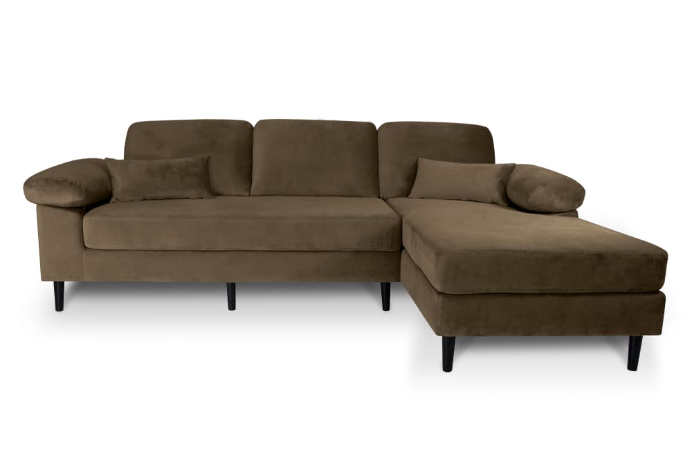 Divano angolare 3 posti in velluto marrone con chaise longue destra