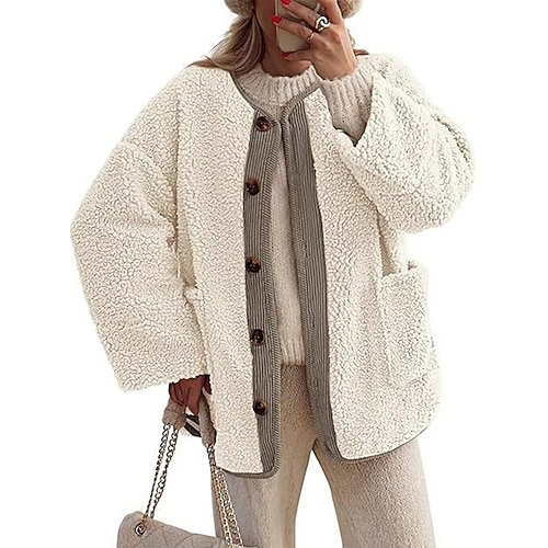 Per donna Cappotto Invernale Giacca Sherpa Giacca Casual Caldo Confortevole Tasca Bottoni Moda Casual Semplice Vacanza Streetwear Casuale Abbigliamento quotidiano Monopetto Regolare Senza colletto
