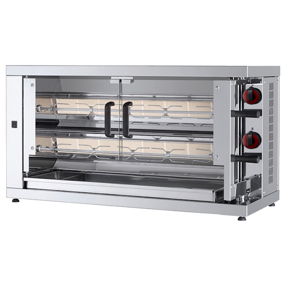 Hähnchengrill mit gas 2 schwerter = 10/12 hühner - 1100x450x600 mm - 14 Kw + 85 W 230/1V - 53100021 Eurast