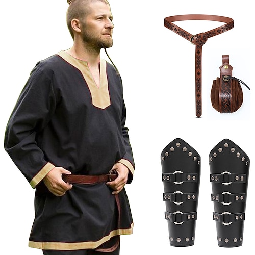 Retrò Vintage Medievale Rinascimento Blusa / Camicia Armatura Cintura in Vita Pirata Guerriero Cavaliere Vichingo Cavalieri Templari Tinta unica Costume Per uomo Vichingo Fantasia Halloween Carnevale