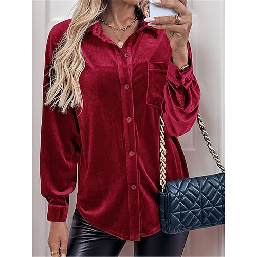 Per donna Blusa Tinta unica Elegante Casual Manica Lunga Girocollo Top Regolari Quotidiano Bottoni Nero Bianco Blu Viola Arancione Estate Primavera Autunno