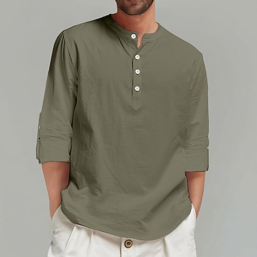 Per uomo Camicia Camicia Guayabera Camicia estiva Tinta unica Da mare Curise Nero Bianco Blu marino Cachi Manica corta Con colletto Primavera estate Abbigliamento Collage