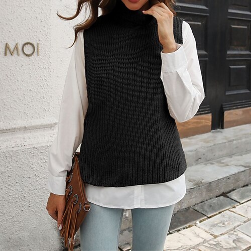 Per donna Gilet Maglione Casual Tinta unica Spesso Dolcevita Lavorato a maglia Senza Maniche Top Regolari Maglia Quotidiano Ferie Uscire Nero Marrone Autunno Inverno