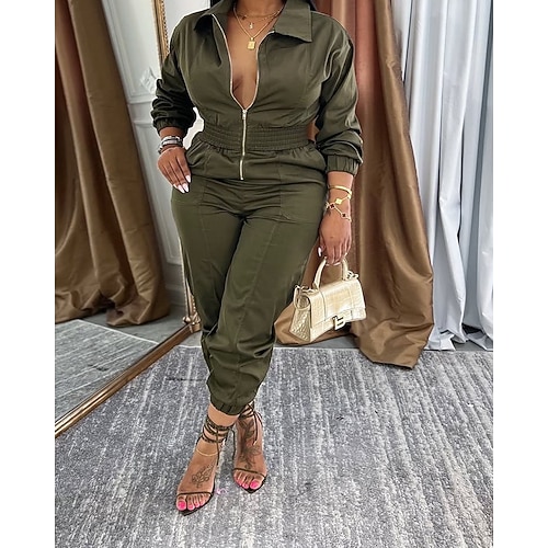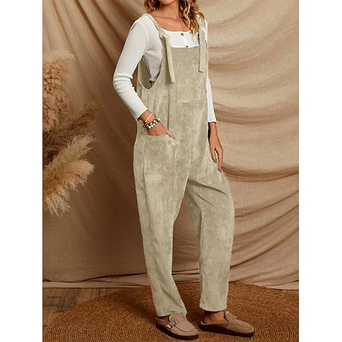 Per donna Normale Tuta Streetwear Tinta unica Senza Maniche Scollo a V Tasca Streetwear Uscire Vestibilità regolare Nero Verde militare Cachi Estate