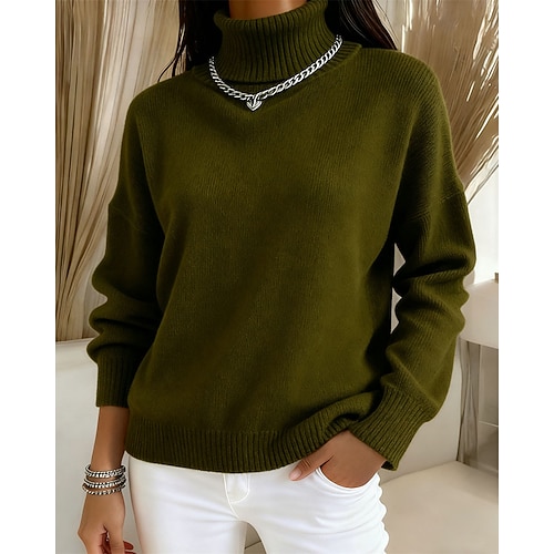 Per donna Felpa Maglione Elegante Moda Streetwear Tinta unica Dolcevita Lavorato a maglia Manica Lunga Top Regolari Maglia All'aperto Casa Lavoro Nero Bianco Autunno Inverno