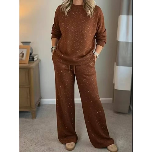Per donna Elegante Caldo Vintage Set da due pezzi Manica Lunga Girocollo Tinta unica All'aperto Casuale Quotidiano Blu Nero Rosso Primavera Vestibilità comoda