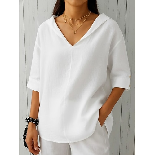 Per donna Blusa Tinta unica Elegante Moda Informale Manica lunga A V Top regolari Ufficio Giornaliero Per eventi Pizzo Con ricami Bianco Primavera Autunno