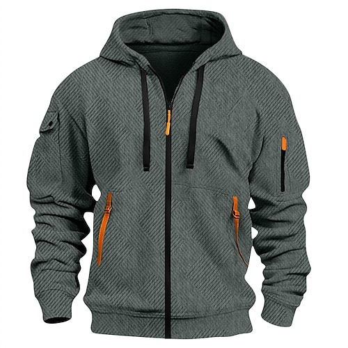 Per uomo Felpa con cappuccio Felpa con cappuccio a zip intera Felpa con cappuccio e zip Nero Bianco Vino Blu Reale Cachi Con Cappuccio Semplice Jacquard Coulisse Tasca Sport Outdoor Quotidiano Ferie