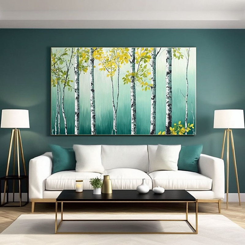 Handmade Silver Birch Tree Oil Painting On Canvas Original Green Birch Forest Landscape Textured Artwork Bedroom Decor Living Room Wall Art paintings