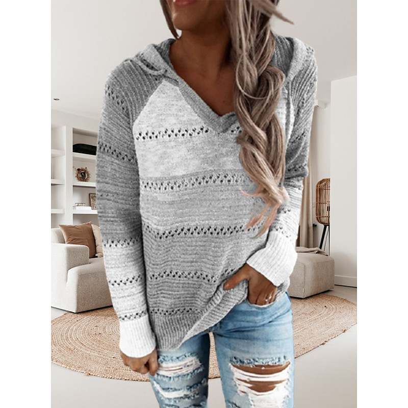 Women's Pullover Sweater Jumper Casual Soft Color Block Crochet Hooded Thin Long Sleeve Tunic Knit Work Daily Holiday Black Wine Fall Winter