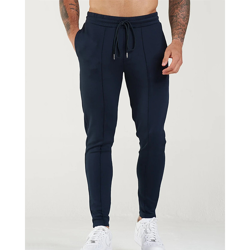Men's Skinny Trousers Chinos Pocket Drawstring Elastic Waist Solid Color Comfort Formal Work Daily Fashion Classic Style Black Dark Blue Micro-elastic