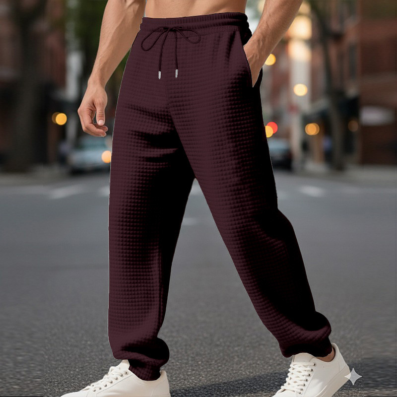 Men's Waffle Sweatpants Trousers Straight Leg Sweatpants Drawstring Front Pocket Plain Comfort Full Length Outdoor Work Daily Fashion Streetwear Black White Stretchy