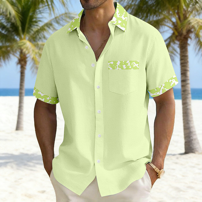 Men's Abstract Art Shirt Summer Shirt Button Up Shirt Short Sleeve Fashion Casual Streetwear Vacation Holiday Summer Turndown 3D Print Front One Pocket Linen Like Shirt Blue White Pink Green