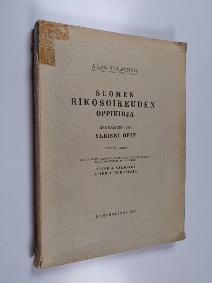 Allan Serlachius : Suomen rikosoikeuden oppikirja 1 osa : Yleiset opit