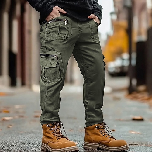 Herren Cargo-Hosen Hose Mehrere Taschen Elastischer Kordelzug in der Taille Einfach tragbar Outdoor Täglich Campen und Wandern Mode Klassisch Schwarz Armeegrün