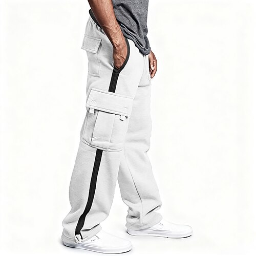 Herren Cargo-Hosen Hose Kordelzug Elastischer Bund Mehrere Taschen Farbblock tragbar Outdoor Täglich Campen und Wandern Mode Klassisch Schwarz Weiß