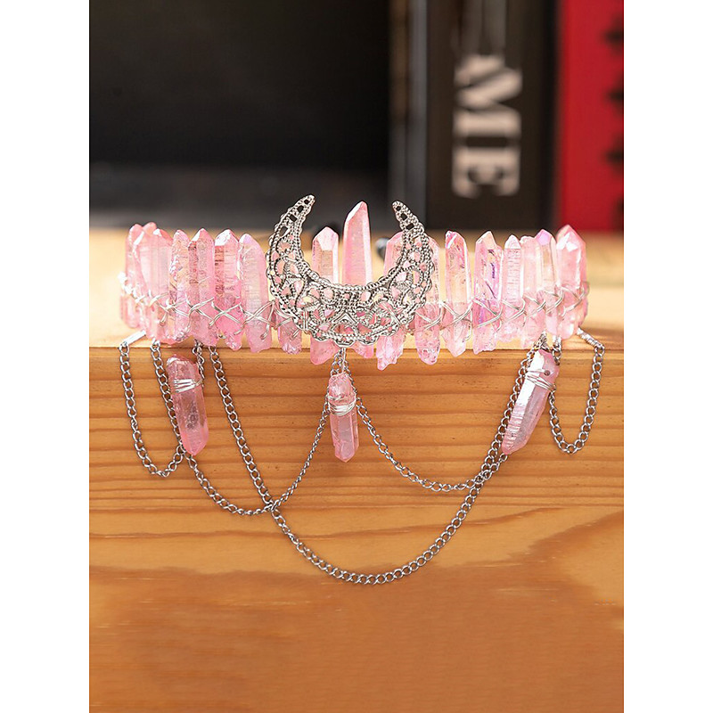 Women's Boho Crystal Crown Headpiece - Mystical Quartz Moon Headband in Multiple Colors - Perfect for Carnival Masquerade Costumes