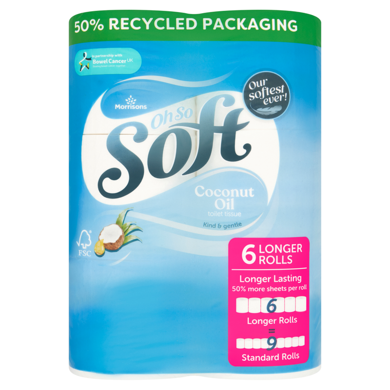 Morrisons Oh So Soft Coconut Oil Toilet Tissue 6 Longer Rolls