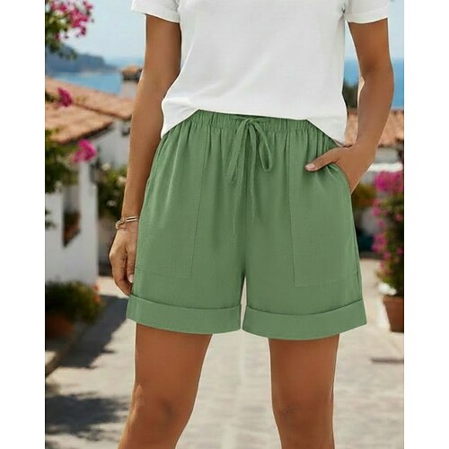 Damen Chinos Shorts Sommershorts Urlaub Lässig Kurz Mittlere Taillenlinie Einfach Kordelzug Tasche Bequem Komfort Unelastisch Täglich Outdoor Schwarz Rosa Dunkelmarine Grün Sommer Frühling Lässiger