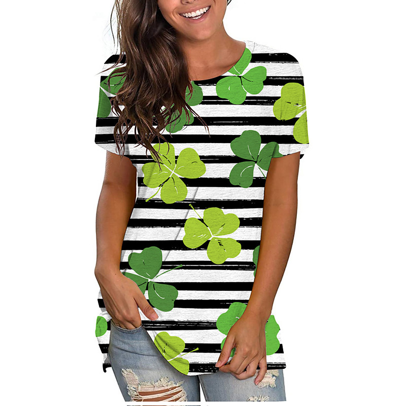 St. Paddy's Day St. Patrick's Day Women's T Shirt Leaf Striped St. Patrick's Day Long Sleeve Round Neck Long Tops Holiday Weekend Print Black Orange Green